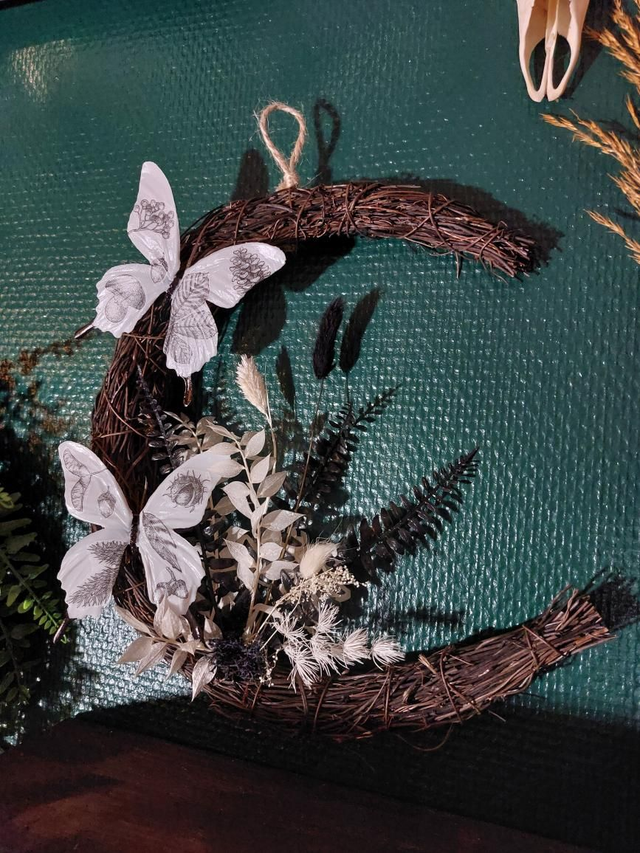 Suspension lune avec papillons en résine
